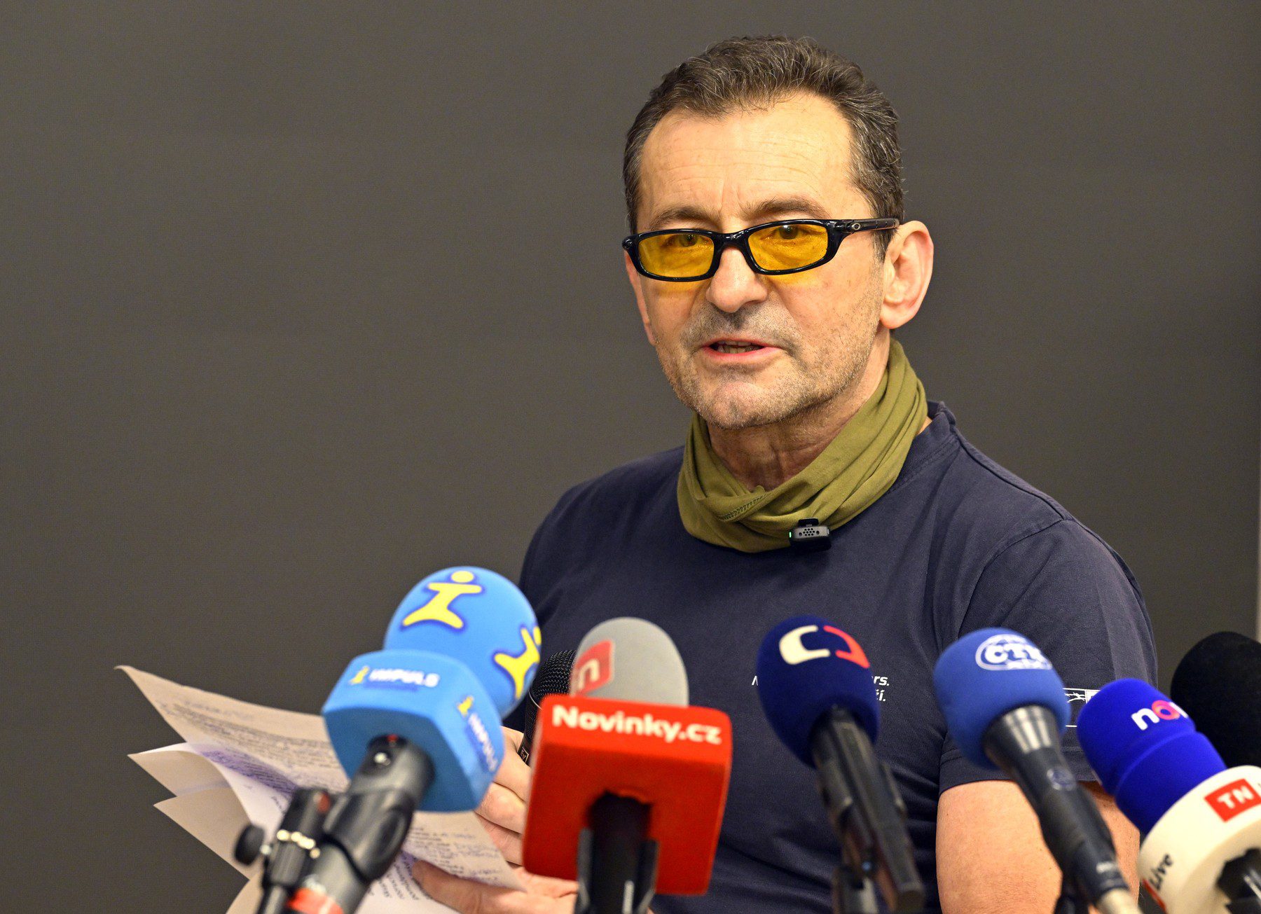Herec Ondřej Vetchý na tiskové konferenci k aktuálnímu dění kolem aktivit Skupiny D, která organizuje sbírku na drony v projektu Nemesis, 16. prosince 2025, Praha.,Image: 1059668580, License: Rights-managed, Restrictions: , Model Release: no, Credit line: ČTK / Šulová Kateřina