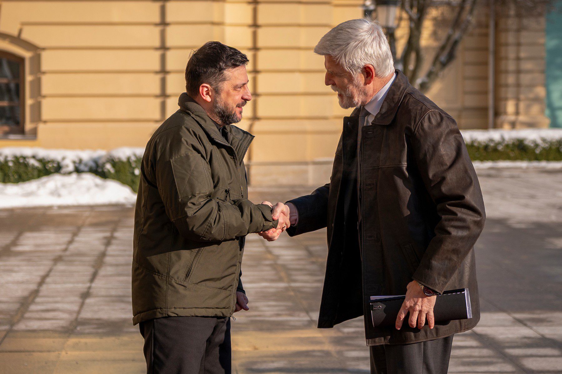 Český prezident na Ukrajinu odcestoval ve čtvrtek, kdy jednal ve Lvově s představiteli místní správy a s ministryní pro záležitosti veteránů Natalijí Kalmykovovou. V jedné ze zdejších nemocnic se pak pozdravil s vojáky, kteří se tu zotavují z válečných zranění, s dětmi, které se v nemocničních podmínkách vzdělávají, či s českými krajany. Seznámil se také s místními projekty české nevládní organizace Člověk v tísni.